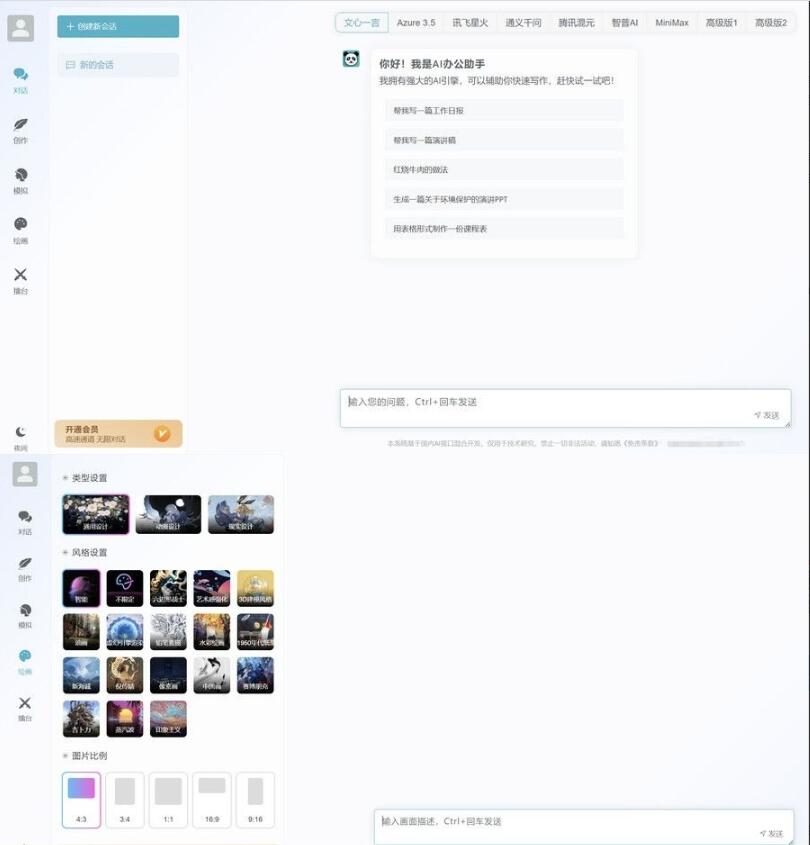 1、已整合国内百度文心、讯飞星火、Azure GPT、通义千问、腾讯混元、智普AI、Claude2等主流AI系统,并支持自定义模型对接,是功能最全的AI系统之一。